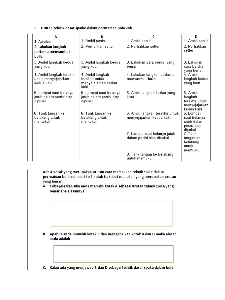 Pada kesempatan kali ini kami akan . Bagi para siswa ataupun guru yang sedang membutuhkan soal bola voli. Jadi selain ada soal pilihan ganda, dalam soal bola voli ini juga. ٢٢ ذو الحجة ١٤٤٢ هـ. Contoh soal bola voli pilihan ganda dan jawabannya.
